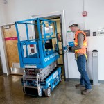 The Genie® GS™-1330m scissor lift offers a maximum platform height of 12.8 ft (3.9 m) and a maximum working height of 18.8 ft (5.9 m), with a 2-person, 500-lb (227 kg) capacity and weighing in at only 1,950 lb (885 kg). The Genie GS-1330m scissor lift is equipped with an efficient, all-electric DC drive system that offers productive power for getting around indoor jobsites with quiet, zero-emissions operation.