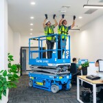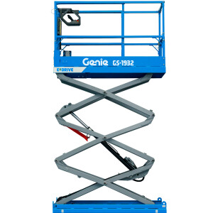 The new generation of the Genie® GS™-1932 E-Drive slab scissor lift also offers quiet electric operation and is ideal for both indoor and outdoor use in tight spaces on firm, level surfaces.