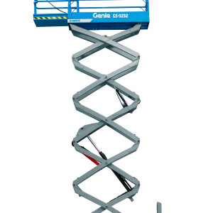 The Genie® GS™-3232 E-Drive is built for working at height in tight indoor or outdoor spaces, with a strong focus on stability and precision. Its automatic self-leveling hydraulic outriggers allow safe operation on slopes up to 5°, making it ideal for slightly uneven surfaces.