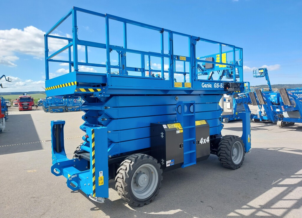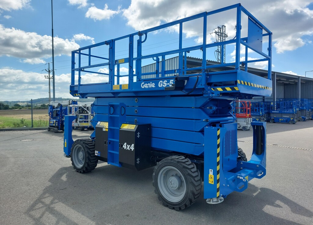 The Genie® GS™-5390 RT rough terrain scissor lift is built for extra-rugged performance and is able to traverse through uneven rough terrain environments.