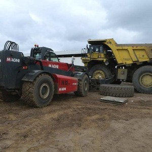 The HTH 30.12 telescopic handler is ideal for moving large, bulky loads in complete safety. Able to lift up to 30 tonnes, it is compatible with a wide range of accessories, making it extremely versatile. Equipped with an RFID system which provides automatic recognition of the various attachments used, this telescopic handler is able to meet a wide range of applications in heavy industry and mining. Its four-wheel drive system, three manoeuvring modes and high ground clearance makes it highly manoeuvrable on all terrains. Its 350 hp engine and hydrostatic transmission offer power, manoeuvrability and precision when moving loads. The comfort and 360° visibility offered by Magni’s patented cab allow the operator to work under the optimum conditions, and help improve safety during delicate movements. It can move large blocks of marble or stone in quarries, or handle materials such as steel bars, rails or other metal structures. It is the ideal machine for maintenance of mining equipment, such as changing rails, replacing hammers or moving conveyor belts.