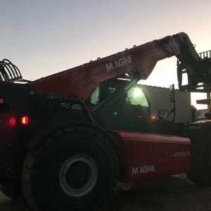 The HTH 35.12 telescopic handler is ideal for moving large, bulky loads in complete safety. Able to lift up to 35 tonnes, it is compatible with a wide range of accessories, making it extremely versatile. Equipped with an RFID system which provides automatic recognition of the various attachments used, this telescopic handler is able to meet a wide range of applications in heavy industry and mining. Its four-wheel drive system, three manoeuvring modes and high ground clearance makes it highly manoeuvrable on all terrains. Its 350 hp engine and hydrostatic transmission offer power, manoeuvrability and precision when moving loads. The comfort and 360° visibility offered by Magni’s patented cab allow the operator to work under the optimum conditions, and help improve safety during delicate movements. It can move large blocks of marble or stone in quarries, or handle materials such as steel bars, rails or other metal structures. It is the ideal machine for maintenance of mining equipment, such as changing rails, replacing hammers or moving conveyor belts.