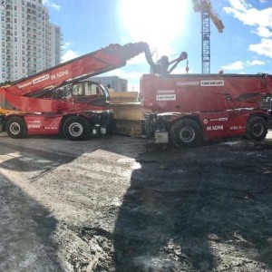 The RTH 6.46 SH is the highest rotating telescopic handler in the world. It achieves a lifting height of 46 m, with a maximum load capacity of 6 tonnes. It is the perfect solution for all construction or industrial sites requiring best-in-class reach and lifting capacities. The inclination corrector and scissor stabilisers with large support feet offer excellent stability under all circumstances, guaranteeing perfect ground holding on all terrain in order to ensure maximum operator safety. The dual-extension scissor stabilisers are ideal even with limited space available; even when it is only partially stabilised, the machine is programmed to provide the best possible load chart on each side. When the stabilisers are fully extended, on the other hand, they guarantee maximum machine performance over 360° as they are able to work over a very wide stabilisation base. This model allows the same attachment to be used in two different ways: strength mode M2 and stability mode M1. The first allows very heavy loads to be lifted, but with a more limited extension. The second mode, on the other hand, allows for greater extension, but with more limited loads. It is compatible with a huge range of accessories, thanks also to the RFID system which provides automatic recognition and creation of the dynamic load charts; this telescopic handler is able to meet a wide range of applications in construction and industry.