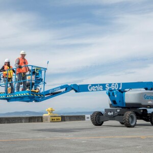 Leading the class of the 20 m working height booms, the new Genie® S®-60 J telescopic boom lift is right-sized for completing work-at-height applications, such as general construction, maintenance, inspection and painting tasks. Offering the essential performance that operators need on rough terrain, it includes unrestricted platform capacity of 300 kg, a standard 1.8 m jib, oscillating axle for excellent 4WD traction, low-weight design to keep ground pressure low when operators are working in more sensitive ground conditions. Additionally, rental companies can fit two units on one equipment truck, reducing shipping costs and increasing rROIC, thanks to the machine’s low weight and compact size.