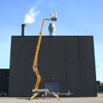 The 1500 EX platforms are mounted with hydraulic propulsion, turnable basket and hydraulic stabilizers. Hydraulic propulsion enables the platform to propel itself around the worksite. Operation from a special platform, giving a complete overview. The turnable basket makes it possible for 2 persons to operate parallel with e.g. a facade.